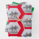 Weihnachts Surfer Couple Red White Green Wrapping Paper Sheets. Surfparadies betreten den Ozean in einem Hexagon-Muster, mit einem Muster in drei graduierten Größen.