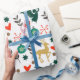 Dieses farbenfrohe Weihnachtsmuster mit Weihnachtssymbolen wird ein lustiger Weg sein, Ihre Weihnachtsgeschenke einzupacken. Version mit weißem Hintergrund.
