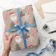 Der Weihnachtsmann mit Weihnachtsbäumen, Heilige mit roten Beeren, roter und weißer Zuckerrohr in einem nahtlosen Muster auf hellbeigem Hintergrund.