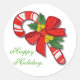 Hübsche dekorative Ferienaufkleber, mit einer Grafik eines dekorierten Zuckerrohrs, der wie Stickereien aussieht. Happy Holidays in green script text ist vollständig anpassbar, um zu lesen, was Sie gewollt haben. Ideal als Umschlag Aufkleber für Ihren Urlaub Grußkarten und Einladungen.