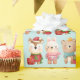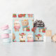 Umschlagpapier mit einer niedlichen Abbildung mit einem Hasen, einem Bären und einem Reh, die alle in festlicher Kleidung gekleidet sind. Adorable und skurril.