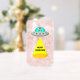 Dieses phantastische Weihnachtsglas zeigt ein digitales Kunstbild einer Alien Raumsonde, die mit hellen Weihnachtsbeleuchtung geschmückt ist. Im Inneren des UFO, das durch das Fenster blickt, ist eine grüne Alien mit schwarzen Augen, die eine festliche Weihnachtsmannmütze trägt. Es gibt einen Lichtkegel, der von der fliegenden Untertasse kommt. Der Schatten einer Nachricht wird auf die Erde projiziert. Die Nachricht sagt Ho Ho UFO. Feierliche Grüße aus dem Weltraum für alle Erdlinge.