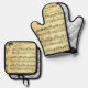 Weihnachts-Caroling Oven Mitt & Pot Holder-Set - die Farben sind ein Vintag gealtertes Ecru/Creme und schwarz.
