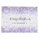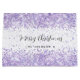 Ein stilvoller weißer Boden mit violettem, lavenfarbenem Imitat Confetti, Glitzern. Personalisieren Sie Ihren Familiennamen und fügen Sie ihn hinzu. Text: Frohe Weihnachten.