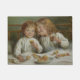 Dieses Design zeigt ein Gemälde des englischen Malers aus der Viktorianischen Zeit, Joseph Clark (1834-1926). Es zeigt zwei kleine Kinder, die am Weihnachtsmorgen Früchte und Kekse essen. Das Mädchen lächelt ihren Bruder an, und der Junge sieht den Betrachter an, während seine Schwester ihn liebevoll beobachtet. Die kleinen Kinder sitzen zusammen im Bett, während sie die Weihnachtsfeierlichkeiten genießen. Es gibt Weihnachtsknacker auf den Bettwäsche, die die Kinder gezogen haben. Vor ihnen befindet sich auch eine Schüssel Obst. Die Kinder haben beide braunes Haar und tragen beide weiße Nachthemden. Es ist eine wunderschöne Darstellung einer traditionellen Weihnachtsfeier im Viktorianischen England.