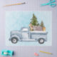 Zierpapier mit festlichem Urlaubsstil. Ein LKW, der Weihnachtskiefern mit einigen Waldtieren trägt. Ein Bär, ein Fuchs und ein Hirsch, der im Rücken stehend ist, um eine Fahrt zu machen. Design erstellt mit Aquarellfarben.