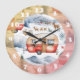 Weihnachtswagen, Schnee, Hirsch Große Wanduhr