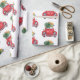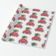 Festig und modern präsentiert sich dieses Aquarellmuster mit Autos im Rot-Käfer-Stil, die mit Weihnachtsbaum überragt sind und auf weißem Hintergrund präsentiert werden.