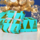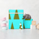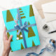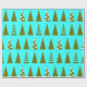 Ein modernes Muster von weißen geometrischen Bäumen, einige mit schneeweißen Ornamenten... alles auf einem aquablauen Hintergrund.