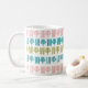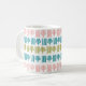 Diese Tasse hat ein zeitgenössisches Weihnachtsdesign mit vier Linien und einen Weihnachtsbaum in Rosa, Grün und Türkis, das sich in der Gestaltung wiederholt. Wie das Design, aber wollte verschiedene Farben? Nachricht.