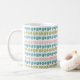 Diese Tasse hat ein zeitgenössisches Weihnachtsdesign mit vier Linien und einen Weihnachtsbaum in Rosa, Grün und Türkis, das sich in der Gestaltung wiederholt. Wie das Design, aber wollte verschiedene Farben? Nachricht.