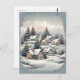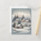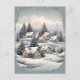 Vintage Weihnachtsdorf im Wald, Wintersaison alte Hütten mit Kiefern, Schneeflocken, Retro-Farben