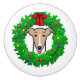 Weihnachtskranz und Lichter Whippet - Niedliches Cartoon Whippet-Gesicht, gerahmt durch einen Weihnachtskranz mit heiligen Blätter, Beeren, altmodischen Weihnachtslichtern und einem großen roten Bogen. Copyright © Angi Laframboise & Brian Laframboise. Weihnachts-Hund züchtet Geschenke für Hundefreunde.