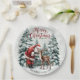 Fügen Sie Ihrem Weihnachtstisch eine Touch von Charme und Charme mit den Vintagen Aquarellpapier-Tellern des Weihnachtsmanns und seiner treuen Rentiere unter schneebedeckten Kiefern hinzu. Der weiche, grüne Hintergrund mit Aquarellfarben-Spritzern schafft eine gemütliche, nostalgische Atmosphäre, die sich perfekt mit den passenden Servietten, Untersetzer und Ornamenten der gleichen Kollektion verbindet. Personalisieren Sie den Text so, dass er Ihren Familiennamen enthält oder behalten wird das traditionelle "Frohe Weihnachten"-Design für einen zeitlosen festlichen Look.