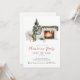 Weihnachtsweihnachtsfest in Aquarellfarbe mit Kamin, Weihnachtsbaum, Stuhl und Hund. Personalisieren Sie Ihre Weihnachtseinladungen mit Ihren Party-Details.