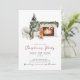 Weihnachtsweihnachtsfest in Aquarellfarbe mit Kamin, Weihnachtsbaum, Stuhl und Hund. Personalisieren Sie Ihre Weihnachtseinladungen mit Ihren Party-Details.