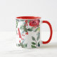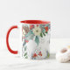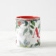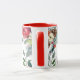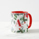 Trendy schicke botanische wintersaisonale xmas Aquarellkaffee Tasse mit roten Bordeaux- und Salbeigrändern von Kiefernfüßen, Heiligenholz, Beeren, Grünpflanzen auf weißem Hintergrund und einer eleganten, hellroten Schriftzeichen Familie Monogram / Name Initial. ++++++++++++++ Einfach mit Ihrem Buchstaben personalisieren! +++++++++++++ könnte für jeden ein niedliches Geschenk sein!