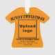 Frohe Weihnachten! Akryler Ornament mit fröhlichen Weihnachtsgrüßtexten, Ihrem Geschäfts- oder Firmennamen, Logo, Adresse und Telefonnummer. Entwürfe sind schwarze Texte auf orangefarbenem Hintergrund und auf T - Shirt-Form. Ornament zur Dekoration des Weihnachtsbaumes in Ihrem Geschäft, Shop oder Büro. Ornament, um Ihre Kunden in dieser Feriensaison visuell zu begrüßen und Ihr Unternehmen zu werben oder Ihren Markennamen zu fördern. Passen Sie es an und nutzen Sie es, um Markenbewusstsein zu schaffen. Bitte Karo des Erscheinungsbildes nach dem Hochladen von Logos und Schriftzeichen. Wenn Ihnen das Aussehen gefällt, können Sie jetzt Ihre Bestellung aufgeben. Wenn Sie das Logo und die Texte verändern und verschieben müssen, um auf dieses Ornament zu passen, wechseln Sie bitte im Design-Tool. Sie können auch andere Änderungen vornehmen, die Ihren Wünschen entsprechen, z.B. die Farbgestaltung des Ornaments, die Farbe des Schriftartes und der Stil des Schriftartes. Frohe Weihnachten! Wir wünschen Ihnen mehr Umsatz in dieser Feriensaison.