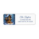 Ein niedliches Feenhaus, das Santa's Workshop in einem bezaubernden Wald Weihnachten personalisierten Rücksendeadressen-Aufkleber ist.