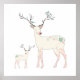 Niedlicher Weihnachtshirsch mit seinem Baby mit niedlichen Geboten in Geweih dekoriert, und Blume dort hinten. Pastellfarben Beige Rosa und Braun mit aquamarin-grünem Akzent.