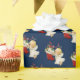 Geschenkpapier mit niedlichem Engeldruck auf tiefblauem Hintergrund.
