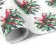 Das Weihnachtsgeschenkpapier wird mit einem festlichen Misteldruck auf weißem Hintergrund gezeigt. Passen Sie dieses Papier an oder kaufen Sie, wie es ist.