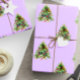Dieses Weihnachtspapier zeigt eine schöne Aquarellbilder eines Kiefernbaumes, der schlicht und elegant rot dekoriert ist. Es schafft ein modernes, minimalistisches Muster in einem lila und hellen Hintergrund.