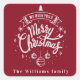 Festlicher Umschlag mit bordeauxrotem Hintergrund mit besten Weihnachtswünsche im dekorativen Schriftart und Dekoration personalisiert mit Ihrem eigenen Familiennamen, um Ihre Umschläge im Stil zu kleiden