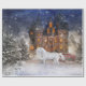 Ein Pferd steht in einer Winterlandschaft neben einem Haus und einem Weihnachtsschlitten. Ein fantastisches Weihnachtsbild für alle Pferdefreunde!