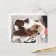 Ein süßes Basset in einer Weihnachtsmannmütze.