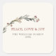 Dieser elegante Weihnachts-Square-Sticker "Frieden, Liebe & Freude" zeigt moderne und minimalistische Wasserfarbe-Grünpflanzen mit roten Beeren auf neutralem Hintergrund. Der Text kann leicht mit Ihrer Wahl der Begrüßung, Familienname, Jahr personalisiert werden.