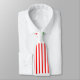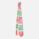Diese Krawatte hat ein modernes Design, das wie ein Gewebe mit roten und grünen Linien auf einem weißen Feld aussieht.