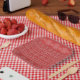 Weihnachtsgestaltung, rot-weiße Weihnachtsskandinavische Stickereien, Schneeflocken, nordische Muster