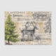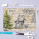 Ein Hirschpaar mit großen Antlern, ein Vintager Kiefernbaum und Äste mit Kiefernzapfen sind Set auf einem wunderschönen cremefarbenen Hintergrund eines alten Weihnachtsgeschmacks und Spielzeugemporium mit großer Typografie, um diesen schönen Vintagen Urlaub und Natur-Themenpapier, perfekt für Geschenkverpackungen oder Handwerk und Entcoupage.