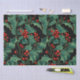 Klassisches Weihnachtsmuster mit Ästen aus heiligen Pflanze und roten Beeren