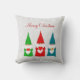 Moderne niedliche Weihnachtszwerge in Rot, Blau und Grün auf hellsilbergrauen Kissen gekleidet. Text nur auf der Vorderseite! Frohe Weihnachten!