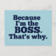 Weil ich der Boss bin, deshalb Postkarte