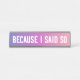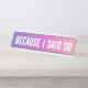 Humorvolles Schreibtischzeichen für Ihren Bürodekor. Er sagt "weil ich so" in allen Kappen auf einem rosa und lila ombre Hintergrund sagte. Ein positives Zitat auf Ihrem Schreibtisch zu haben kann Ihnen helfen, bei der Arbeit anspruchsvoller zu sein!