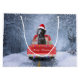 Ein Weihnachtswagen, der durch Schnee fährt und Weihnachtsgeschenke und weimaraner Hund liefert. Eine perfekte Weihnachtsgeschenkidee für jemanden, der diesen Hund züchtet.