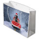 Weimaraner Hund im Schnee sitzend im Weihnachtswag Große Geschenktüte