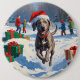 Weimaraner läuft im Schnee mit Weihnachtshut Button