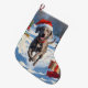 Weimaraner läuft im Schnee mit Weihnachtshut Großer Weihnachtsstrumpf
