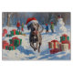 Ein schlanker Weimaraner läuft fröhlich durch die schneebedeckte Winterszene und trägt einen festlichen roten Weihnachtsmütze. Dieses elegante Design hebt den silbergrauen Mantel der Rasse, den athletischen Bau und die loyale Persönlichkeit hervor und erfasst gleichzeitig die Wärme und den Geist der Feriensaison. Ein herzlicher Winterurlaub voller festlichen Charme.