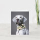 Schöne graue Weimaraner mit Rose um ihren Hals auf einem leeren Notizzettel.