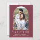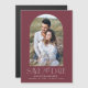Verkünden Sie Ihr Hochzeitstag stilvoll mit unserem modernen Foto speichern Sie das Datum Magnet. Der einfache Speichern des Datums-Magneten zeigt Ihr Verlobung-Foto in einem weinfarbigen Bogen-Rahmen. "Save the Date" wird in weißen, modernen Serif- und Script-Schriftart angezeigt. Personalisieren Sie den Magneten des Save the Date Fotos, indem Sie Ihre Namen, das Hochzeitdatum und den Hochzeitsort hinzufügen.