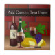 Reizende Szene von zwei Gläsern voll vom Rotwein und zwei Weinflaschen, ein rot und ein Weiß (Grün). Ein Hintergrund einer Ziegelsteinwand und der lila Trauben und des Grün-Blätter, zusammen mit einem Rad des Käses, geschnittenes offenes. Dieser elegante Weinberg, Weinkellerei oder Weinherstellungsszene macht ein großes kundengerechtes oder personalisiertes Geschenk für den Weingeschäftsinhaber, Weinprobieren-Party oder gerade die Dame, die Lieben wine und zu speisen. Alles entwirft Copyright © www.CuteComfy.com 2012
