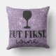 Dieses einzigartige Kissen verfügt über einen lila Imitat-Glitzer-Hintergrund ergänzt durch einen einzigartigen Text, der lautet: "Wenn das Leben dir Lemons gibt, schmeiße sie auf jemanden" Auf der Rückseite dieses Kissens steht: "Aber zuerst, gewinnen", was es zu einem idealen Design für diesen Wein und sarkastischen Menschen in deinem Leben macht!