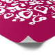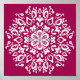 Dieses weiße Mandala sitzt auf einem dunkelrosa-roten Hintergrund. Die Farbe ist sehr reich und raffiniert. Teil der Sammlung Pras Mandala.