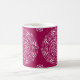 Dieses weiße Mandala sitzt auf einem dunkelrosa-roten Hintergrund. Die Farbe ist sehr reich und raffiniert. Teil der Sammlung Dagrewi Mandala.