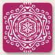 Dieses weiße Mandala sitzt auf einem dunkelrosa-roten Hintergrund. Die Farbe ist sehr reich und raffiniert. Teil der Pympbys Mandala Kollektion.